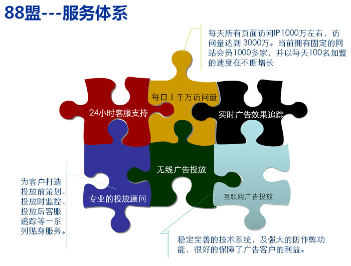 )通过整合有线互联网各类垂直或综合类个人站点优质广告位,进行广告投放和效果营销。